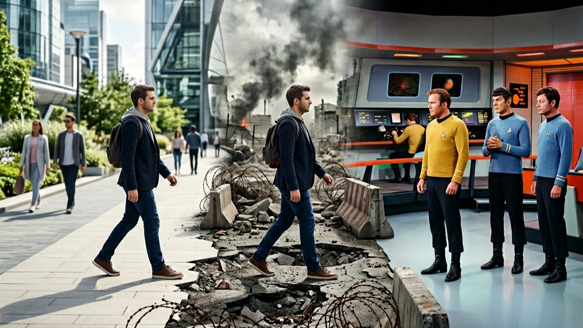 But like a lot of people, I grew up on the original Star Trek, fell in love with Next Generation, and recently got hooked on Strange New Worlds. I always figured Roddenberry’s universe was a beautiful, unreachable utopia — something humanity might stumbl`e toward in a thousand years if we stopped arguing long enough to look up.